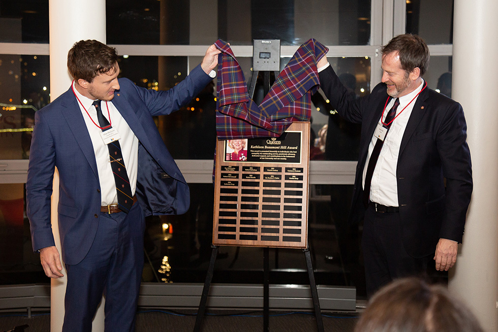To proudly carry Kathleen Beaumont Hill's name and spirit for future generations of remarkable Queen's alumni in British Columbia, this award will be presented biennially to the individual who best exemplifies her outstanding service, passionate advocacy, dedicated support, and contributions to the betterment of our University and our country.