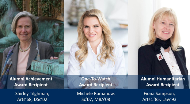 “The Awards Gala gives the QUAA an opportunity to celebrate some of our finest alumni,” says incoming Alumni Association president Sue Bates, Artsci’91. “Some of these award recipients have worked tirelessly to support their alma mater while others have achieved national and international acclaim. They all deserve to be recognized and celebrated.”