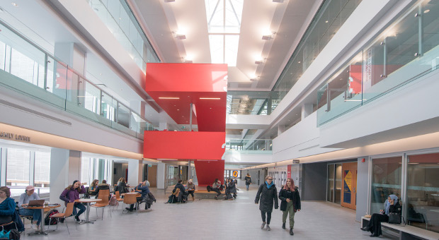 On Saturday, March 30, members of the Queen's and Kingston communities will gather in Mitchell Hall’s grand, sunlit central atrium, alongside donors and government officials for the facility’s official ribbon-cutting event. Representatives of the university and the students, provincial and local governments will make remarks at the ceremony, as will Bruce Mitchell (Sc’68) – the lead patron who will speak on behalf of all donors to the project.